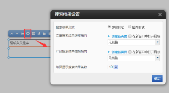 ⑤.也可以选择在页面管理中创建新页面,再手动放置产品搜索结果插件或者文章搜索结果插件,然后在搜索框的设置中链接到刚刚添加的页面